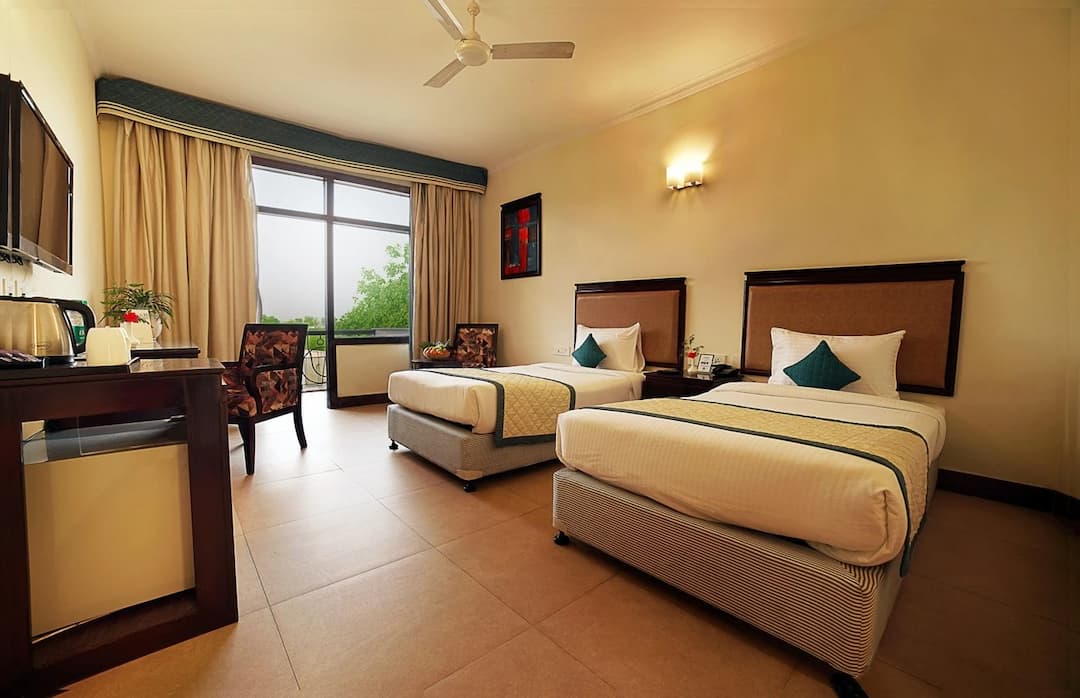 The TreeHouse Sunrise Resort & Caravan Park. is a 10-acre property situated along the Delhi-Jaipur Highway in Neemrana, Rajasthan. Overlooking the scenic Aravalli Range, it provides a peaceful getaway for weekend trips from the National Capital Region (NCR). The resort offers a blend of standard accommodations, like rooms with private balconies or gardens, and a unique caravan park experience for travelers. Guests can enjoy numerous recreational facilities, including a swimming pool, gymnasium, and indoor and outdoor game areas for sports like tennis, volleyball, and billiards. The resort also features an in-house multi-cuisine restaurant called Spice Rack, along with extensive outdoor lawns and a banquet hall for hosting events like weddings and corporate retreats. While many visitors praise its serene ambiance, spacious property, and polite staff, others have noted issues with maintenance, service delays, and occasional inconsistencies with food and cleanliness. Overall, it is considered a decent, value-for-money option for those seeking a quiet retreat with a range of facilities in a natural setting.Recreational and Leisure Facilities