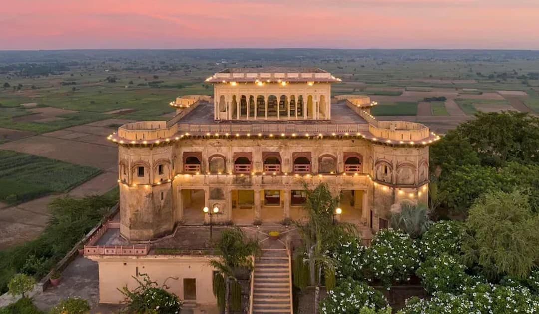 Spread across acres of landscaped gardens and ancient ramparts, Tijara Fort Palace showcases a rare combination of Rajput and Afghan architectural styles. The property is divided into several beautifully restored sections — Rani Mahal, Mardana Mahal, Hawa Mahal, and Deewar Mahal — each telling its own story of regal charm. The palace’s seven terraced gardens and sweeping countryside views create an atmosphere of calm grandeur.