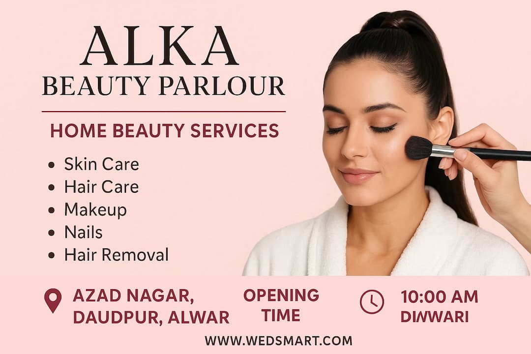 Alka Beauty Parlour, located at 12 Siddharth Vihar, 60 Feet Road, Azad Nagar, Medical Colony, Daudpur, Alwar – 301001 (Rajasthan), is a trusted destination for beauty care and grooming services. Known for quality service, experienced beauticians, and a clean, comfortable environment, the salon offers a complete range of beauty solutions for women of all ages.