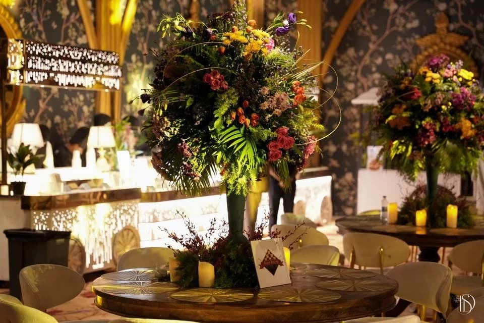Decor: Floral arrangements, lighting, drapery, and thematic setups