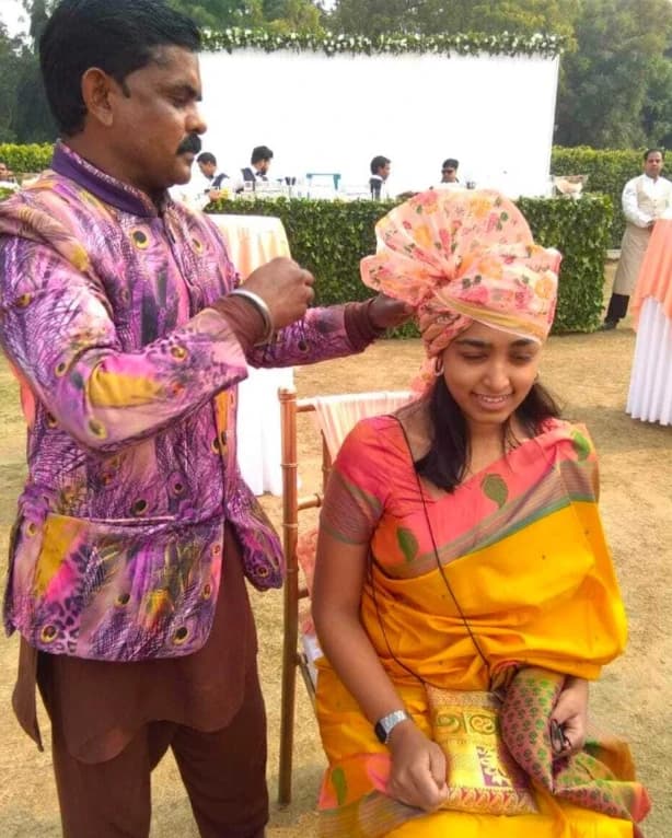 They specialize in professional Safa / Pagdi tying for grooms, family members, and baraatis, ensuring a perfect traditional look for every guest. Their expert team provides cloth + tying service, making your event hassle-free and stylish.