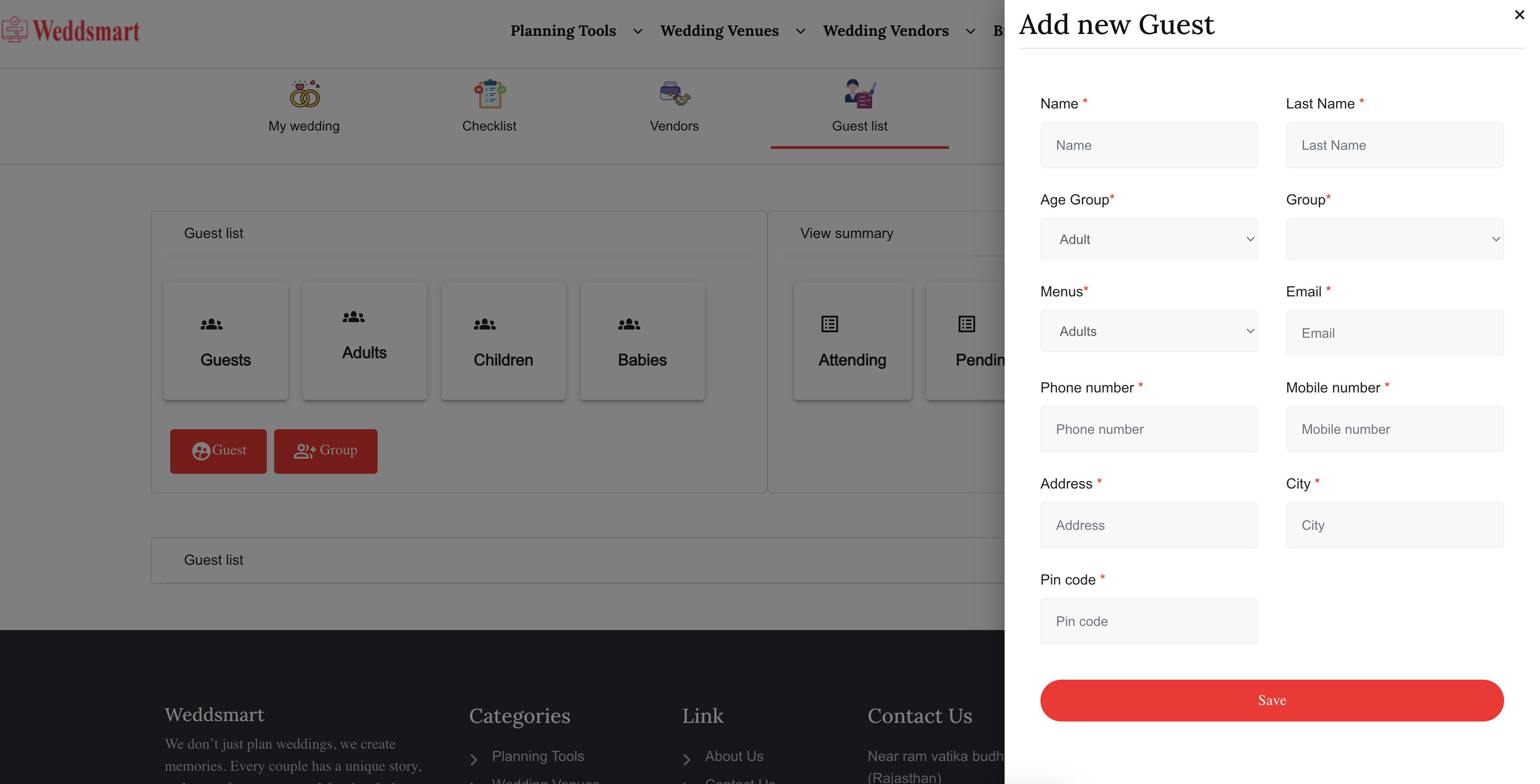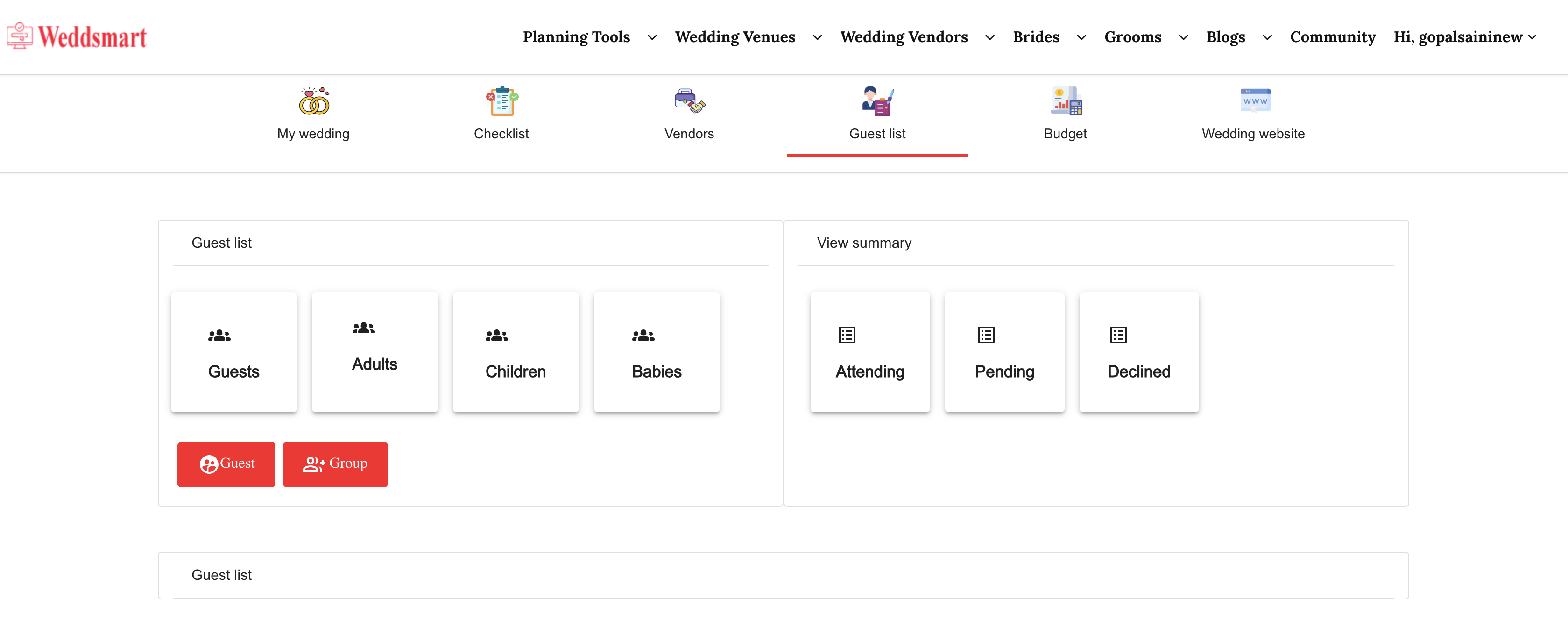 Organize your guests’ information and RSVPs in one place with Weddsmart’s free Guest List Manager.